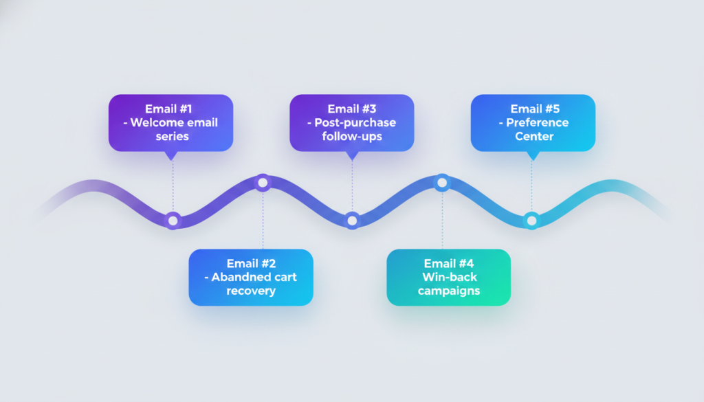 We configure Klaviyo, Omnisend, or Mailchimp with automated flows.