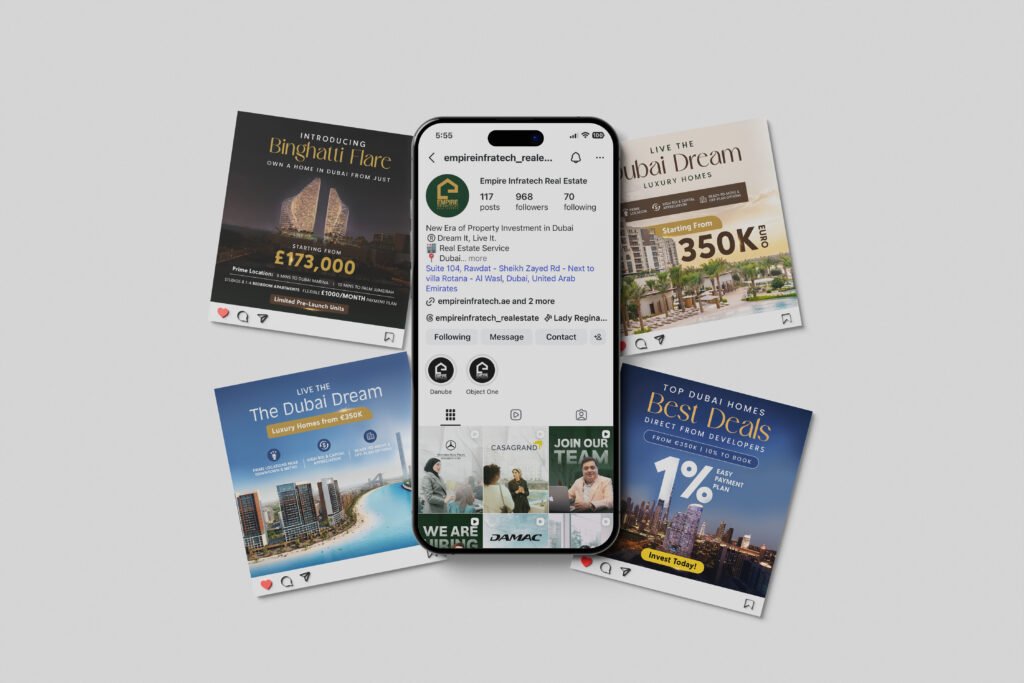 Edinsol partnered with a UAE-based real estate company to build a strong digital presence on Instagram and Facebook. The primary objective was to increase brand visibility, promote property listings, and generate qualified inquiries and appointments through social media marketing.